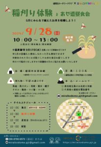 第46回【みらいこども食堂】2025年 9月28日(日) 『稲刈り体験とあぜ道昼食会』のご案内