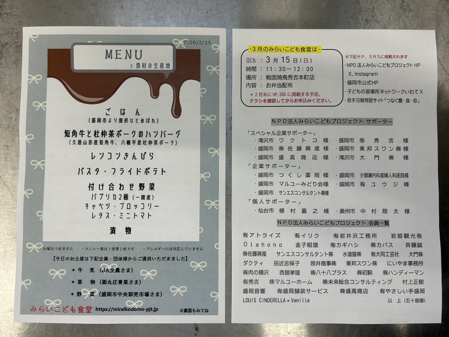 第51回【みらいこども食堂】2026年2月15日(日) 『岩手県産食材使用弁当配布』を開催しました